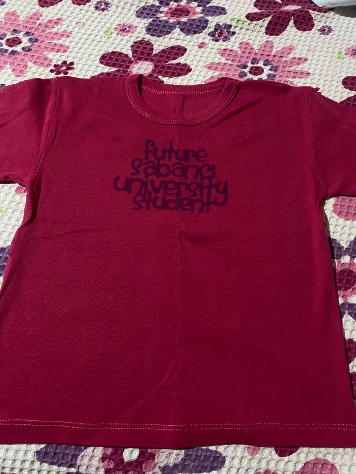 Pembe, kısa kollu, baskılı, pamuklu kız çocuk tişörtü. Hiç giyilmedi. Bol kesim likralıdır. 2-3 yaşa rahatlıkla olur. İki Kol Arası: 35 cm Boy: 40 cm