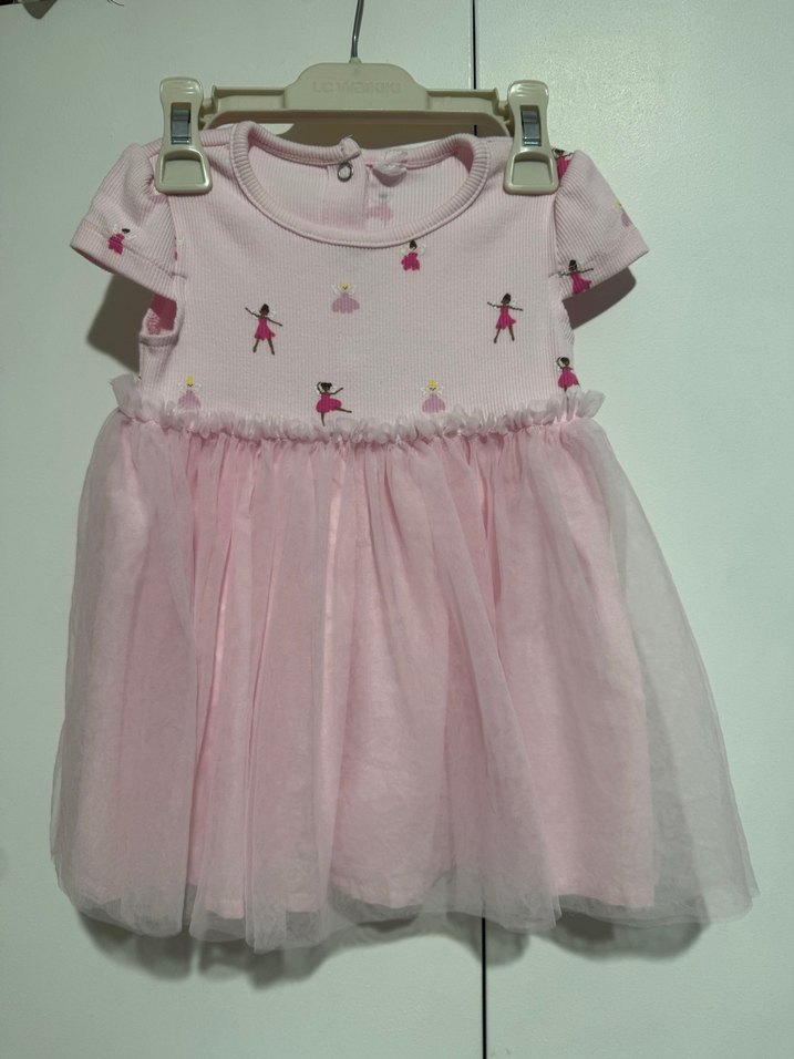 Kısa kollu, işlemeli pembe kız çocuk elbisesi. Oturan kesim ve volümlü fırfırlı etek kısmı ile şık bir görünüm sağlar.