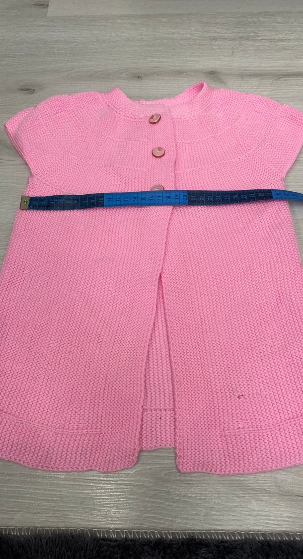 Pembe renkli, örgü kumaştan yapılmış kolsuz kız çocuk hırkası, düğmeli ve regular fit kesime sahiptir. Renkli ve sade normcore tarzındadır. Görselde makina hatası olmuş fakat kullanıma engel değildir fotoğraf ekledim