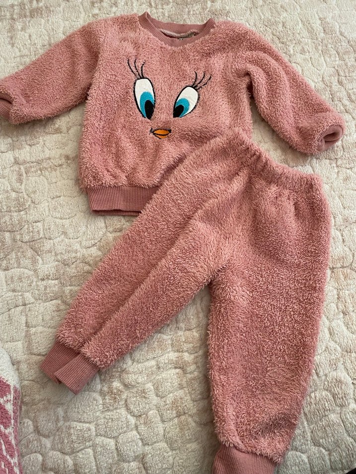 Pembe Kız Çocuk Peluş Eşofman Takımı