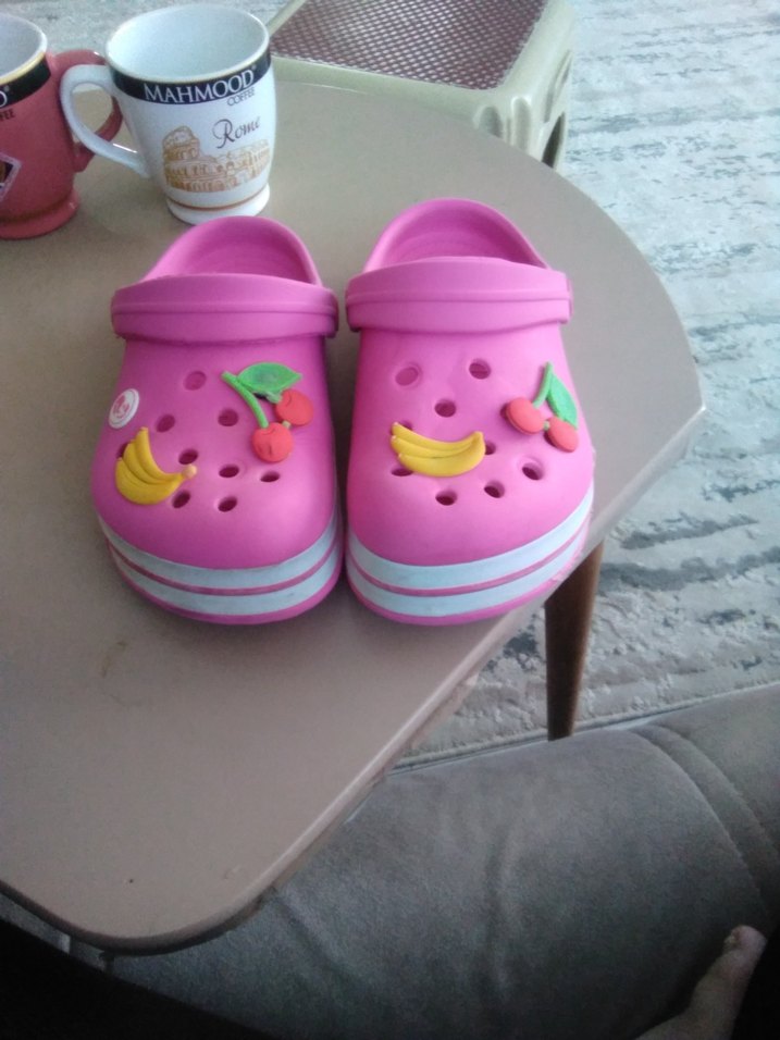 Renkli pop kültür desenli, cırt cırtlı pembe kız çocuk terliği, rahat kullanım için kauçuktan üretilmiştir.