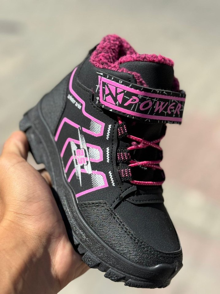 Kız çocukları için renkli baskılı, pembe detaylı, velcro bantlı ve kauçuk tabanlı rock punk tarzı bot. İç kısmı yumuşak ve sıcak tutar. lütfen renk ve numara bildiriniz