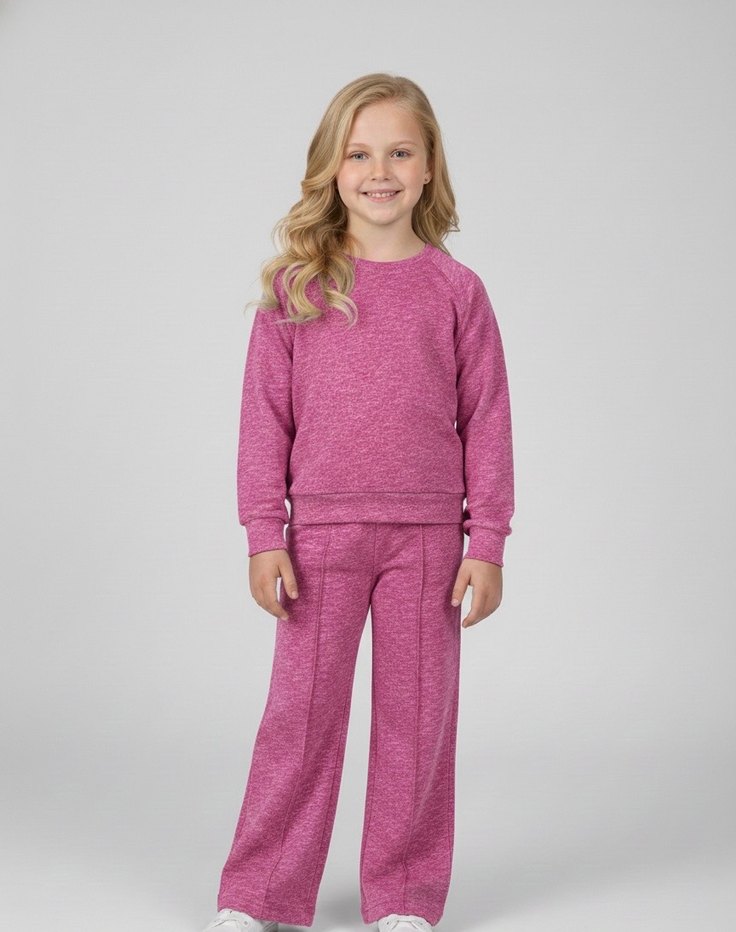 Pembe renkli, salaş kesim ve bisiklet yaka ile uzun kollu kız çocuk eşofman takımı, rahat ve zahmetsiz şıklık sunar.