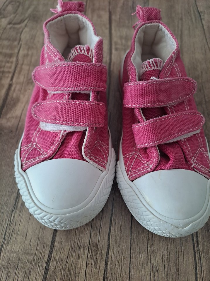 Pembe kız çocuk spor ayakkabısı, Velcro bantlı ve kauçuk tabanlı, renkli ve desensiz tasarıma sahip. Trendy günlük sokak stili için uygundur. Sadece arkasındaki tutma yeri gibi olan kısımlarda sökülme var yıkanma kaynaklı onun dışında sorun yok