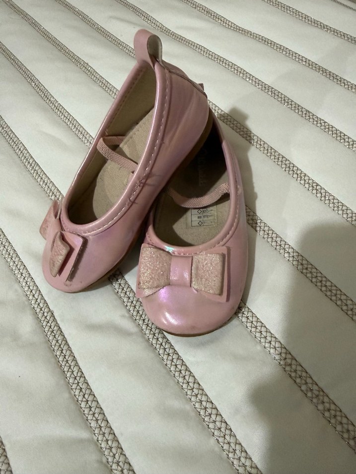 Pembe renkte, tokalı ve fiyonk detaylı kız çocuk babetleri. Yumuşak kauçuk malzemeden, pastel tonlarda klasik şıklık sunar.