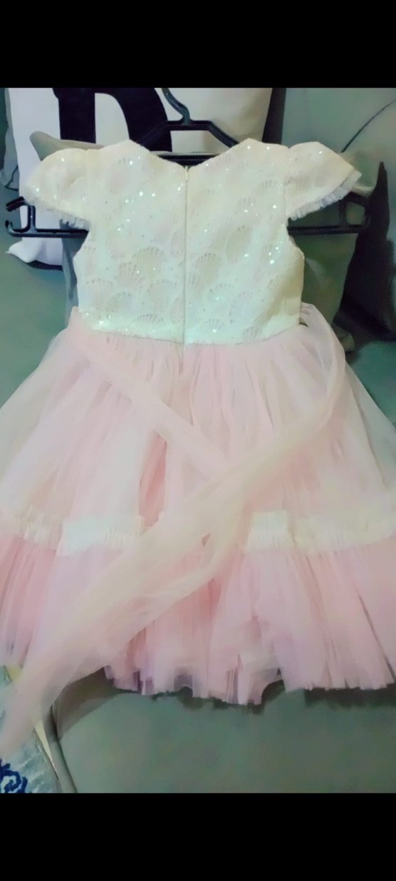 Pembe renkli kız çocuk elbisesi, işlemeli dar kesim üst kısmı ve tül etek kısmında fırfır detayları ile bohem tarzı sunar.
