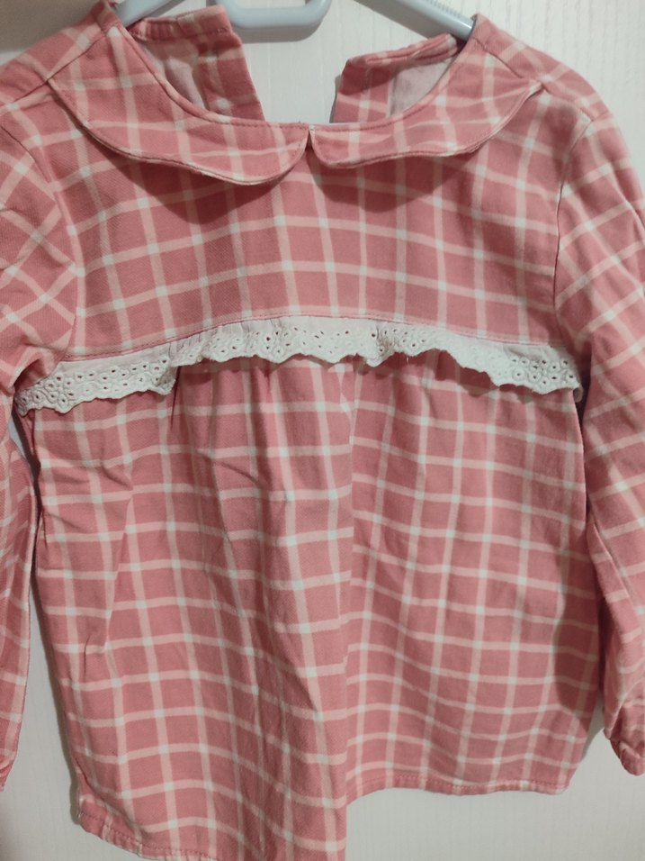 Pamuklu, pastel pembe renkli, uzun kollu, yakalı ve göğüs kısmında fırfır detaylı bol kesim kız çocuk gömlek lcw 3 4 yaş