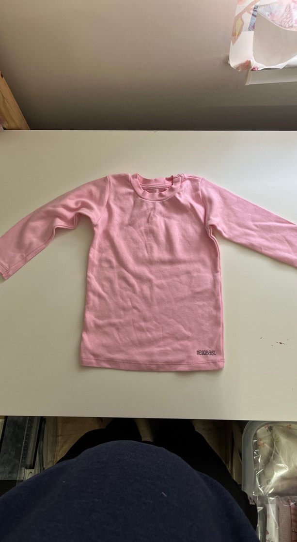 Uzun kollu, yumuşak ve pastel pembe renkte çocuk içliği, rahat kullanım için uygun.