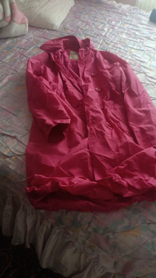 Parlak pembe sentetik kumaştan, bol kesim ve drapeli kız çocuk yağmurluk sadece iki saat giyildi dolapda duruyordu sadece ütu ister sıfır gibi yepyeni r. ️