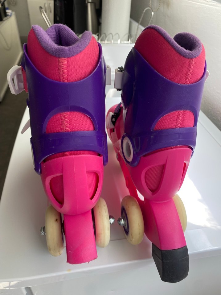 Tokalı, renkli pembe ve mor kauçuk kız çocuk patenleri, athleisure ve spor için uygundur. Desensiz ve güvenli destek sağlar. ⛸️ 30-32 beden,çok iyi durumda
