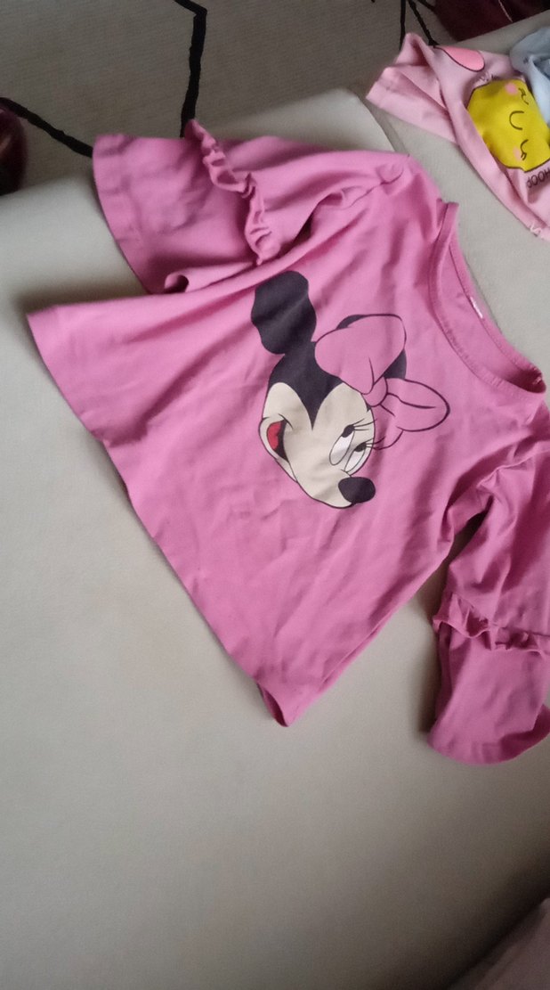 Pembe renkli kız sweatshirtü, uzun kollu ve fırfırlı detaylara sahip. Pop kültür baskılı, bol kesim ve yuvarlak yaka. Yumuşak ve sıcak kumaştan üretilmiştir.