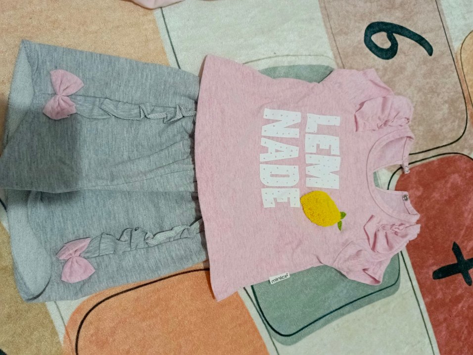 Pembe pastel renkte, kısa kollu ve yuvarlak yakalı kız T-shirtü. Baskılı ve fırfır detaylı, rahat ve trend bir görünüm sunar.
