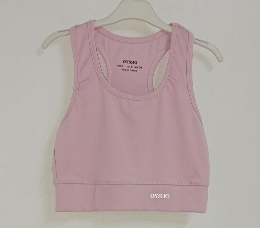 pastel pembe renkte, düz ve kolsuz, dar kesim basic atlet. Yumuşak sentetik kumaştan, streetwear tarzında. Marka: OYSHO. içi pedsiz..