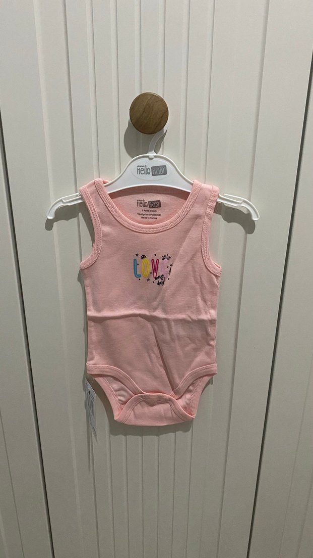 Pembe pastel renkli, kolsuz ve straplez yakalı bebek body. Üzerinde renkli "Lovely" yazısı bulunan sade ve desensiz tasarım, kolay şıklık sunar.