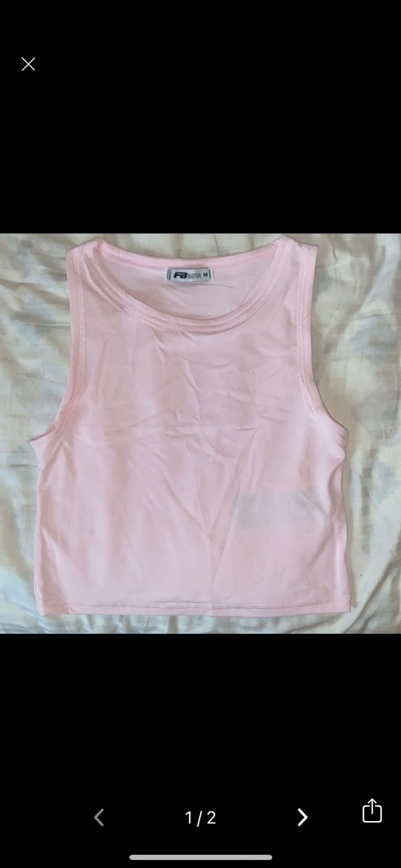 Pembe renkte, kolsuz ve yuvarlak yaka crop top. İnce ve yumuşak sentetik kumaştan, spor ve sokak stili için uygun.