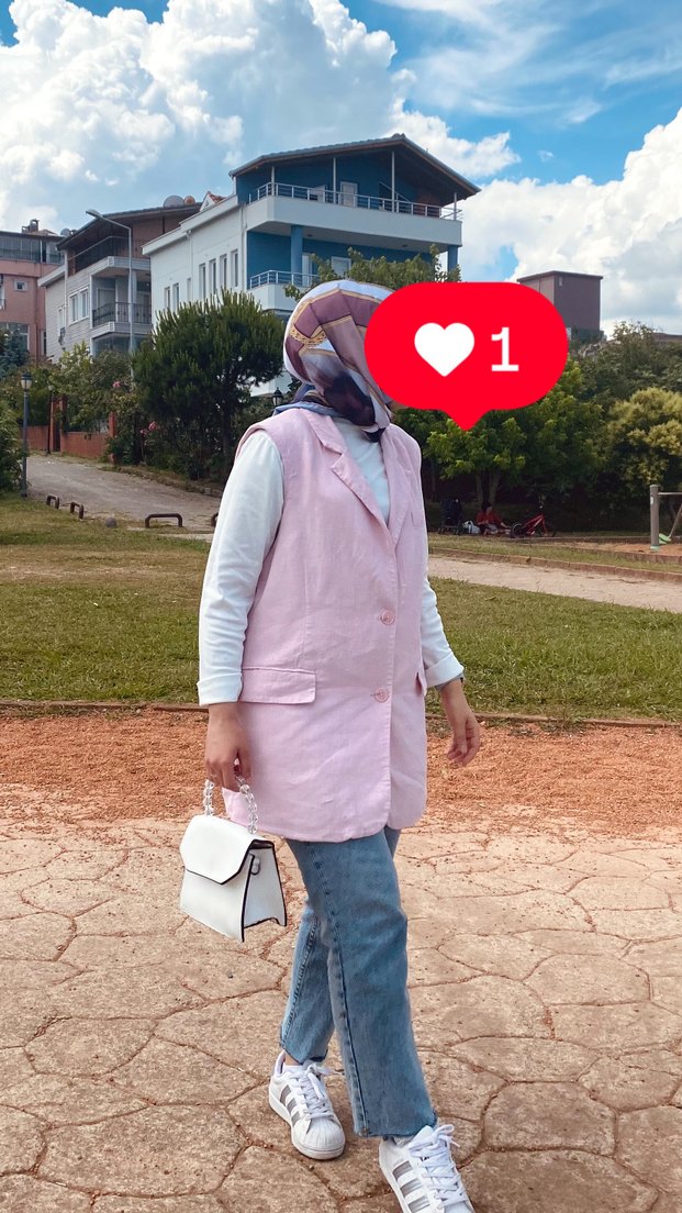 Pembe kolsuz denim blazer, kesik yaka ve batik desen ile günlük kullanımda rahat ve şık bir görünüm sunar. Regular fit, street style için uygundur.