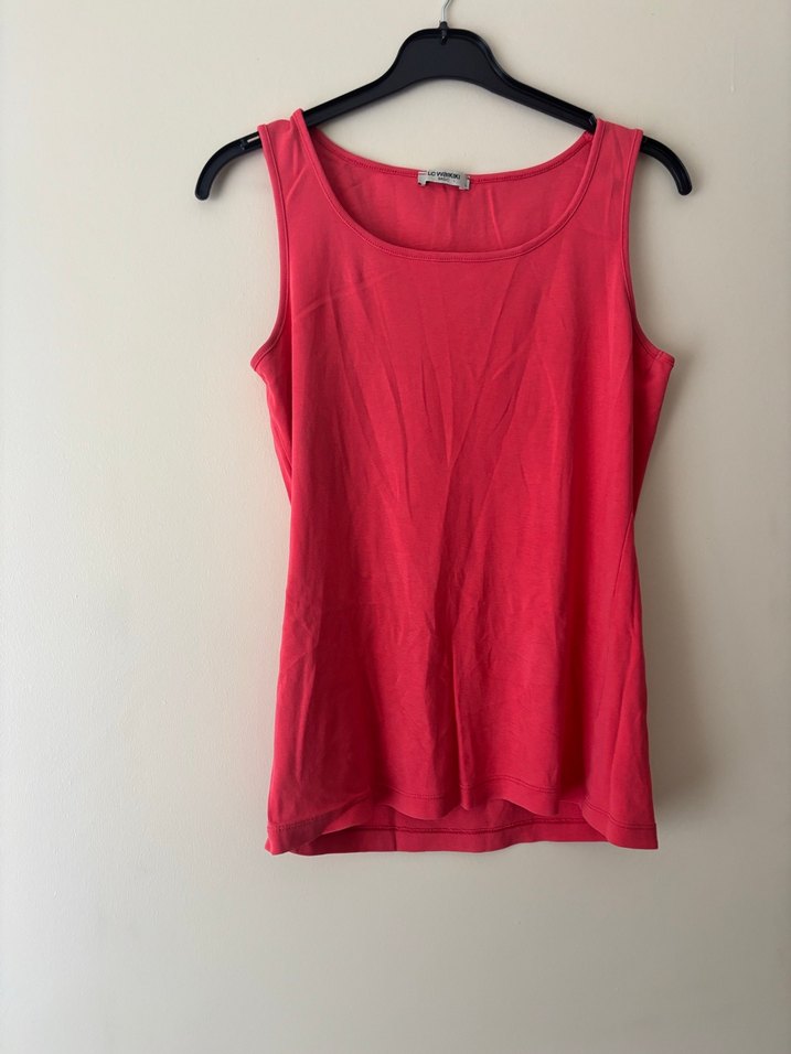 Koyu pembe, kolsuz, yuvarlak yakalı, yumuşak keten kumaştan yapılmış kadın atlet. İnce kesimi ve parlak dokusuyla günlük ve sokak stiline uygundur.