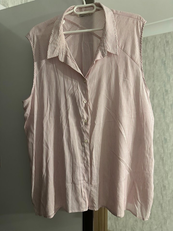 Kolsuz, yakalı ve düğmeli pembe keten gömlek, bol kesim ve normal boyda, pastel tonlarda günlük kullanım için uygun.