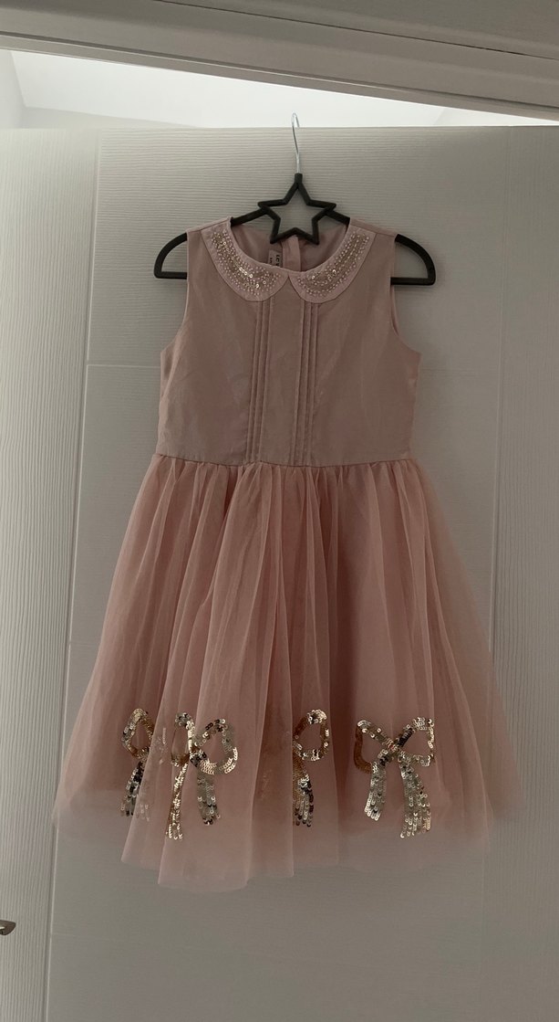 Pembe Kolsuz Nakışlı Kız Elbisesi