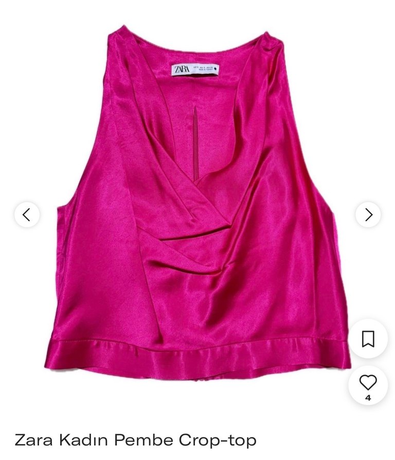 Pembe, saten dokulu kolsuz bluz, dar kesim sokak giyimi ve şık davetler tarzında. Ürün sıfırdır