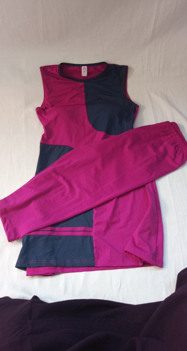Kolsuz, yuvarlak yakalı ve koyu pembe renkte. Düz sentetik kumaştan, haşema