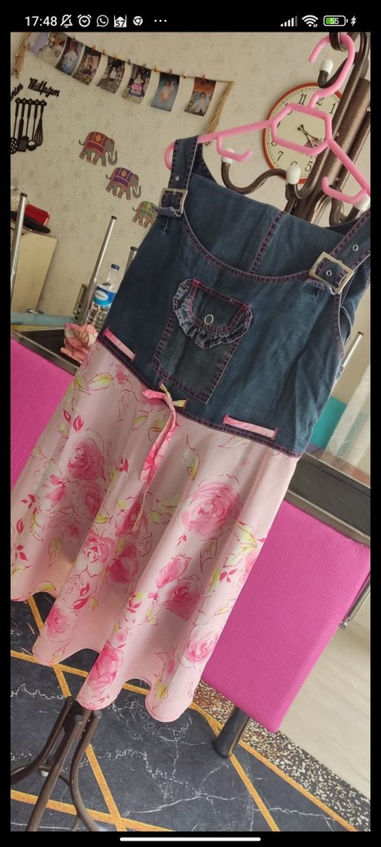 Kot üst kısmı tokalı askılı, açık pembe çiçek desenli, bol kesim Hamilelik Bohem stil, straplez yakalı.