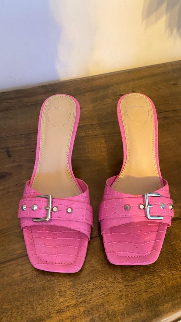 Pembe Krokodil Desenli Tokalı Topuklu Terlik