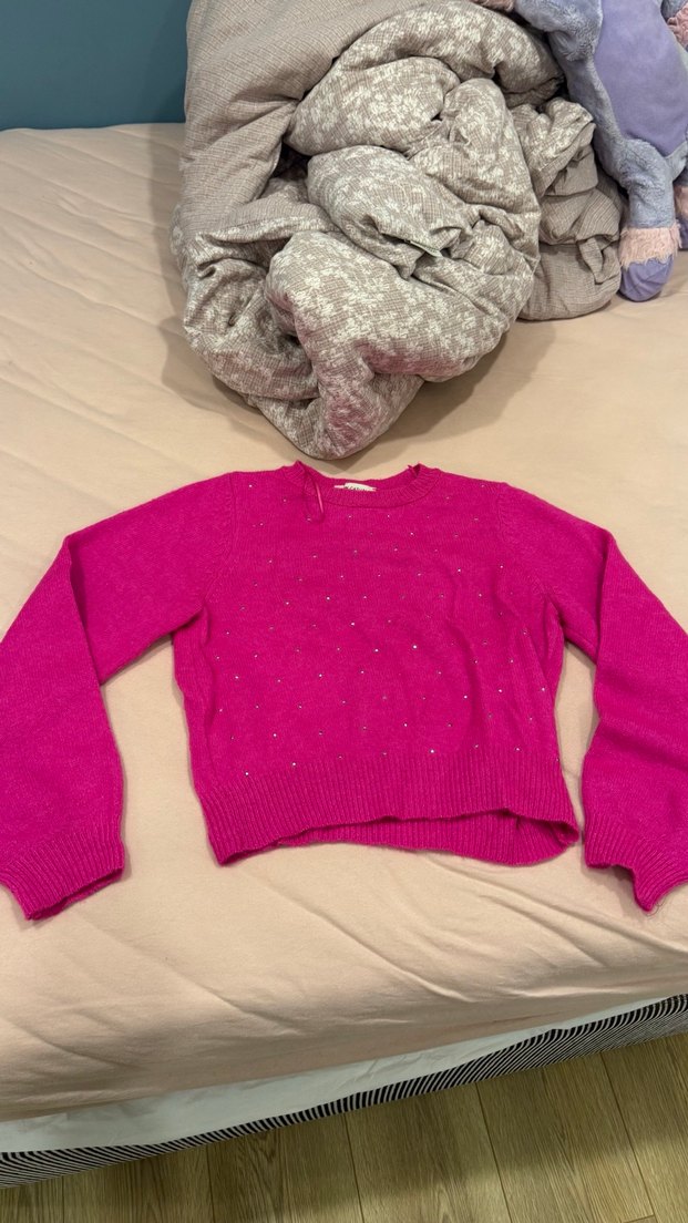 Pembe örgü kadın kazak, uzun kollu ve yuvarlak yaka tasarımıyla rahat ve salaş bir görünüm sunar. Günlük sokak stiline uygun, konforlu ve sıcak tutar. Üzerinde minik minik taşlar var. Hediye geldi hiç giymedim bana olmadı. Ölçüsü mevcut s-M giyenler tercih edebilir