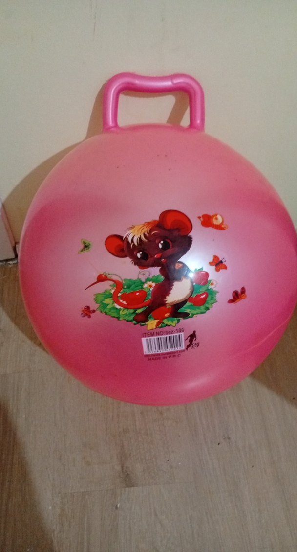 DECATLON Kulplu, pembe zıplayan top oyuncak, üzerinde sevimli hayvan figürü bulunur. Eğlenceli oyunlar için uygundur. bır sorunu yoktur