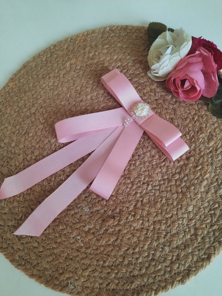 Pembe Kurdeleli fiyonk taşlı broş
