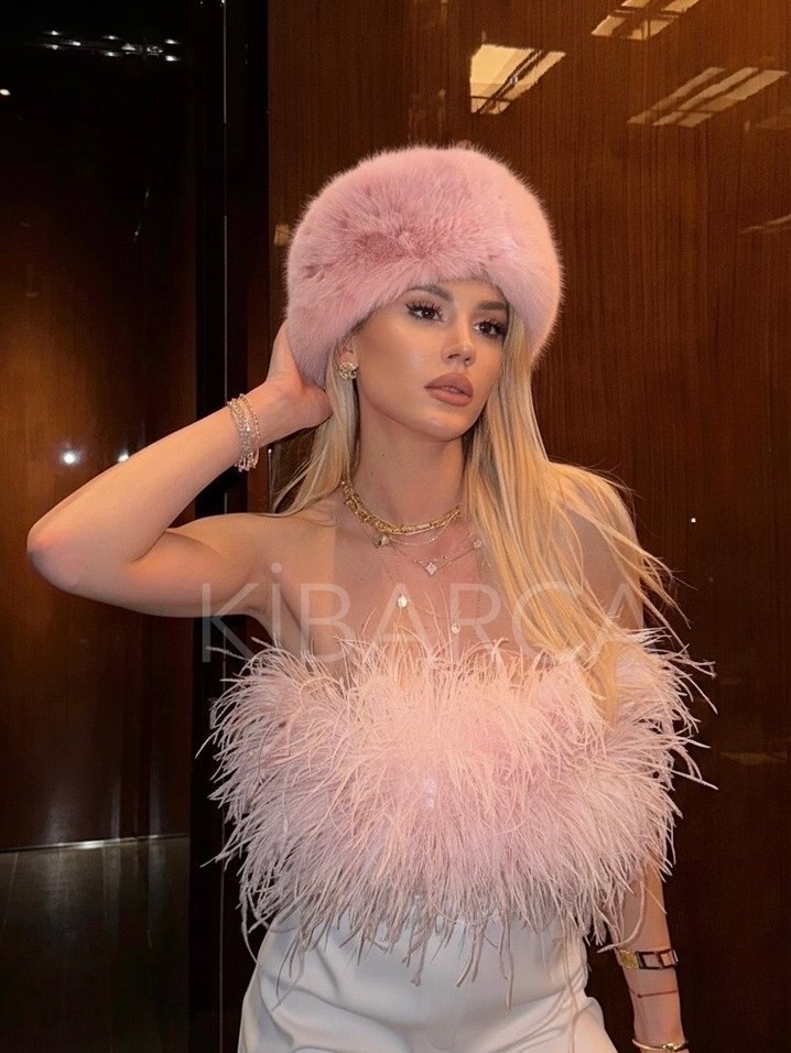 Pembe Kürk Şapka Rus Kalpak Lüx Trend