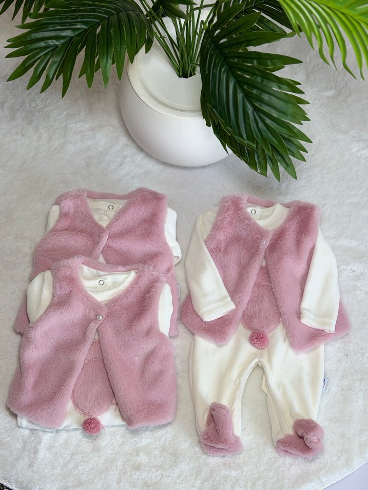 Pembe Kürklü Bebek Kız Kıyafet Seti
