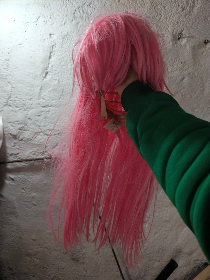 Sentetik kumaştan, 1 kere denenmiştir temizdir! neon Pembe kadın saçı peruk çok seksi kahküllü
