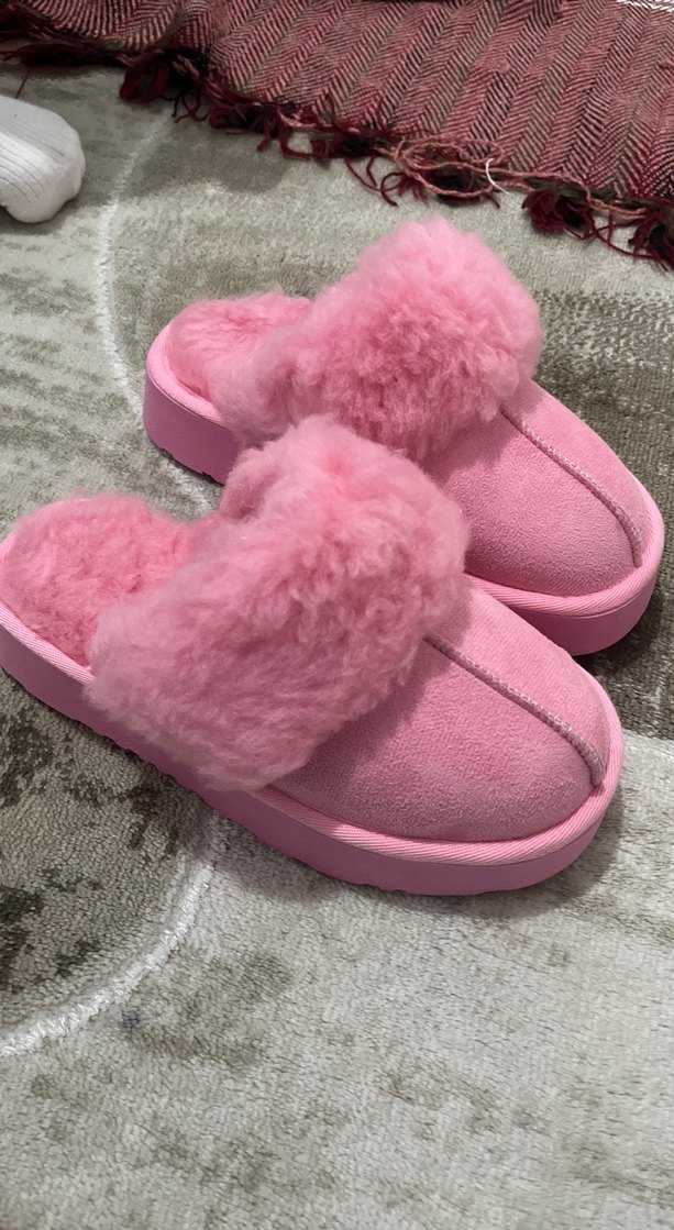 Pembe Kürklü Kadın Ev Terliği