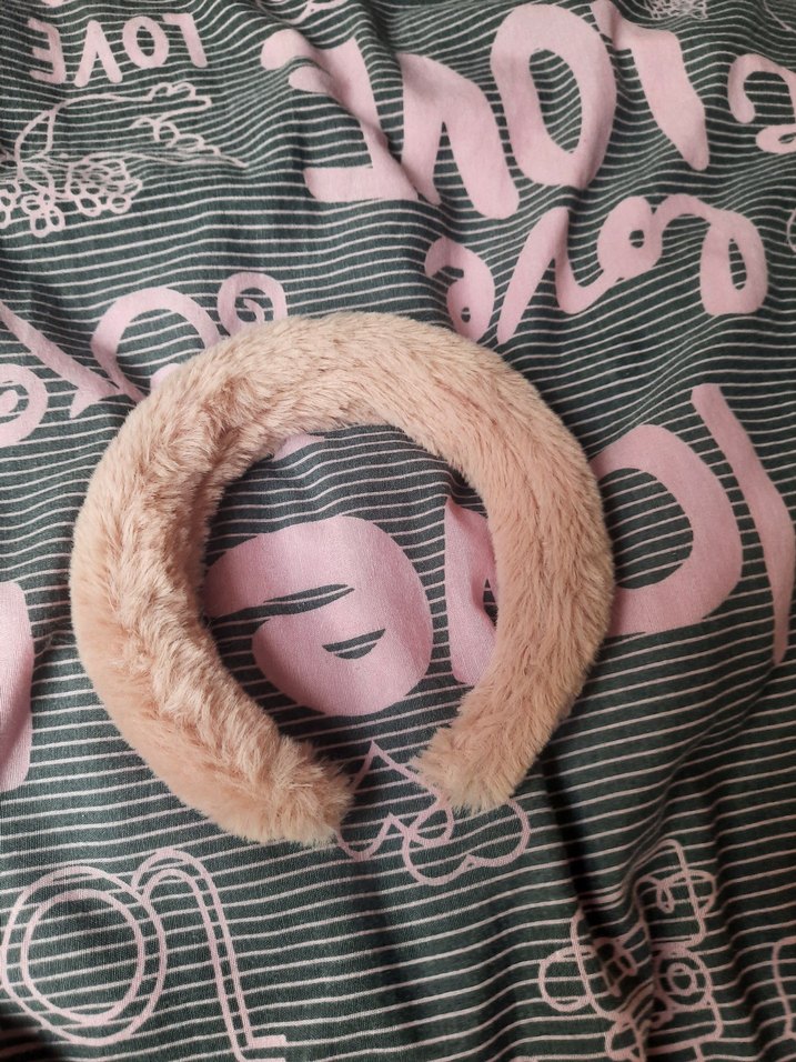 rengi biraz açık çıkmış fakat daha tatlış bir pembe tonu aslında .Yumuşak kürklü pembe saç bandı, rahat ve sokak stili için uygun, bohem ve retro tarzlara uyumlu.