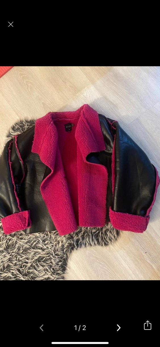Fitted kesim, pembe kürklü iç yüzeyi ve detayları olan, uzun kollu, notched lapel yakalı kısa kesim kadın ceket. Günlük sokak stili için uygundur.