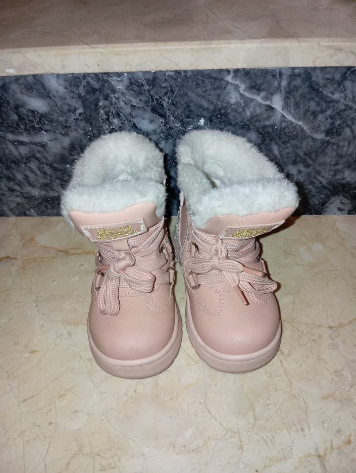 Pastel pembe renkte, kürklü detaylı kız çocuk botu. Yumuşak ve sıcak tutan fleece malzemeden üretilmiştir, rahat bir kullanım sunar. 22 numara az kullanıldı