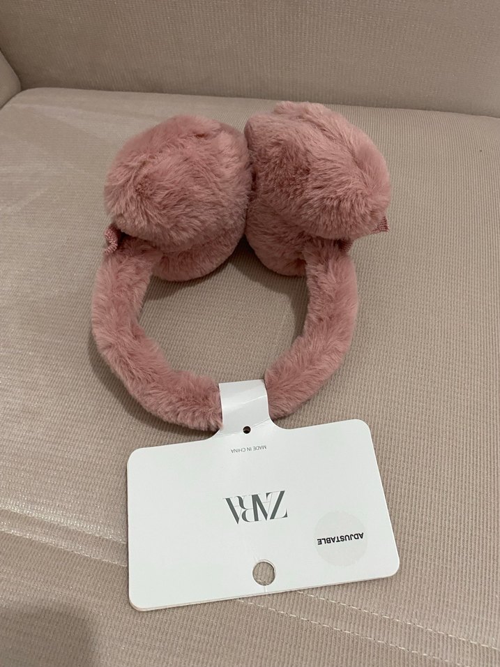 Yumuşak tüylü detaylara sahip pembe kürklü kız çocuk kulaklık, trend sokak giyimine uyum sağlar. Modaya uygun dokunuş için ideal.