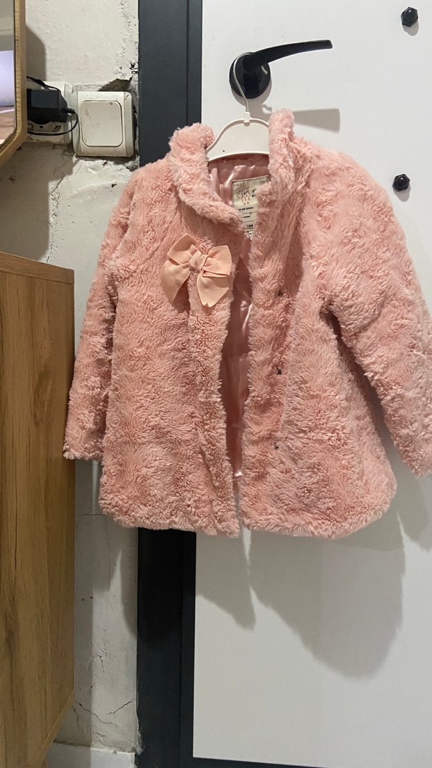 Pembe pastel tonlarında, kürklü detaylı, notched lapel yakalı, bol kesim kız çocuk montu. Düğme kapamalı ve desensiz sade tasarım. Soobe marka 5 yala kadar uygun sıcak yutar