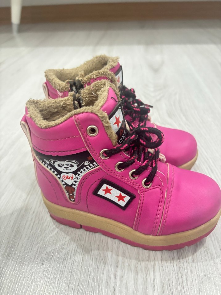 Pembe kauçuk kız çocuk botları, renkli punk tarzı, kürklü iç detay ve baskılı desenlere sahip. Rahat ve canlı görünüm sunar.