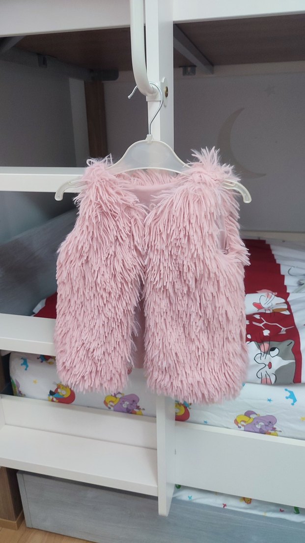 Pembe, kürklü detaylı, kolsuz ve straplez kesime sahip kız çocuk yeleği. Yumuşak ve sıcak kumaştan, bohem tarzda. Az ve temiz kullanılmış hiç bir sorunu yok.1.5/2.5,/3 yaş arası uygun.Yumuşacıkve sıcak tutuyor.