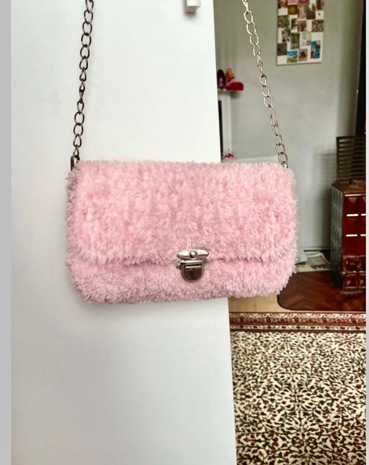 Pembe Tüylü Örgü Kadın Çantası