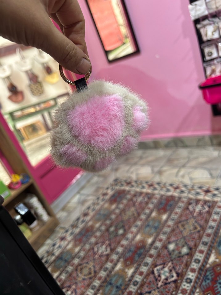 Pembe pastel renkte, kürklü detaylı, rahat ve rock punk tarzını yansıtan anahtarlık. Yumuşak ve asi bir görünüm sunar.