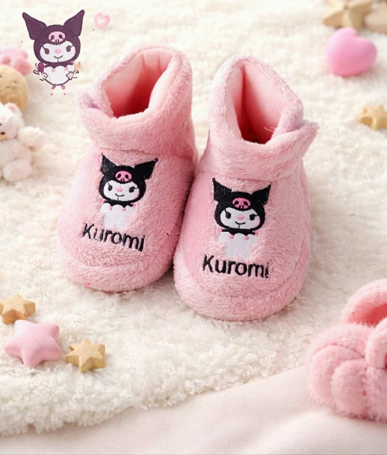 Yumuşak kürk dokulu, örgü detaylı ve renkli Kuromi nakışlı pembe kız ev terliği. Rahat ve normcore tarzda, şık ve sıcak tutar. ürünler Yeni ve sıfırdır