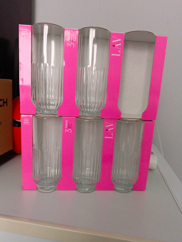 Işıltılı pembe kutuda 5parçadan oluşan, tutuşu kolaylaştıran kabartmalı tasarıma sahip uzun bardak seti. bir adet eksik şıfır ürünler