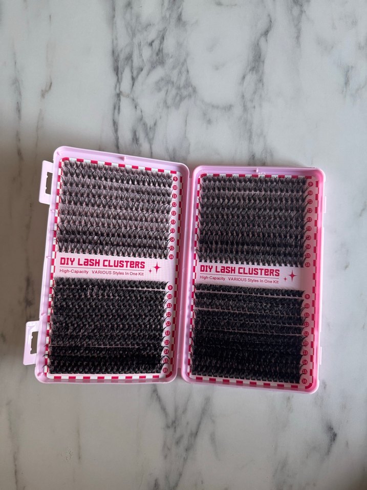 Pembe kutuda koyu renk takma kirpik seti, çeşitli DIY kirpik kümeleriyle yüksek kapasiteli kullanım sağlar. ️