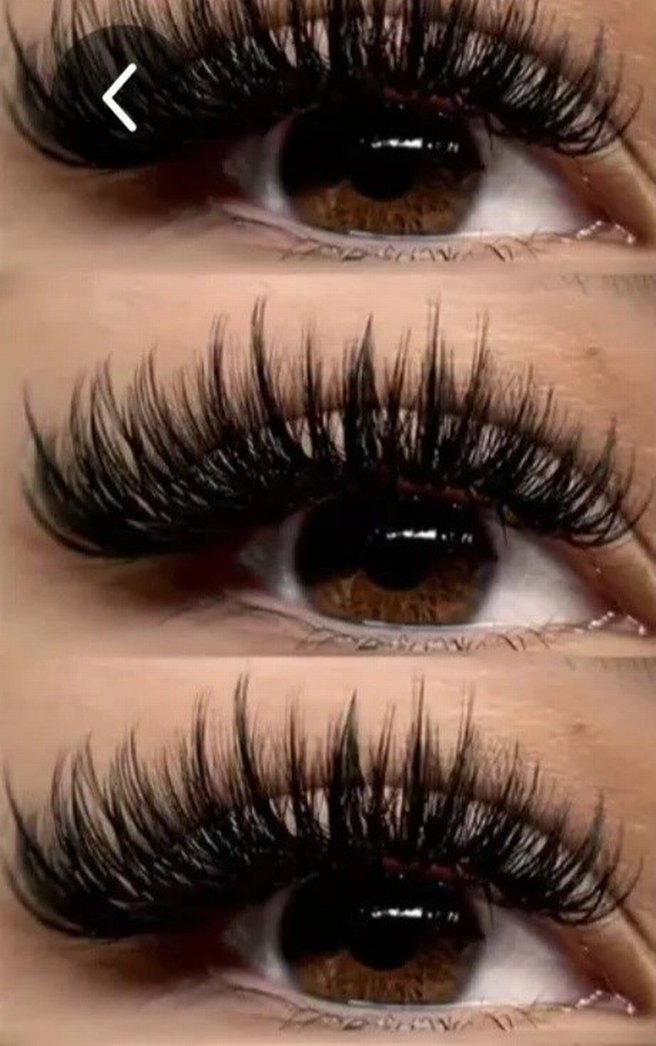 Açık pembe kutuda farklı stillerde siyah takma kirpik seti.