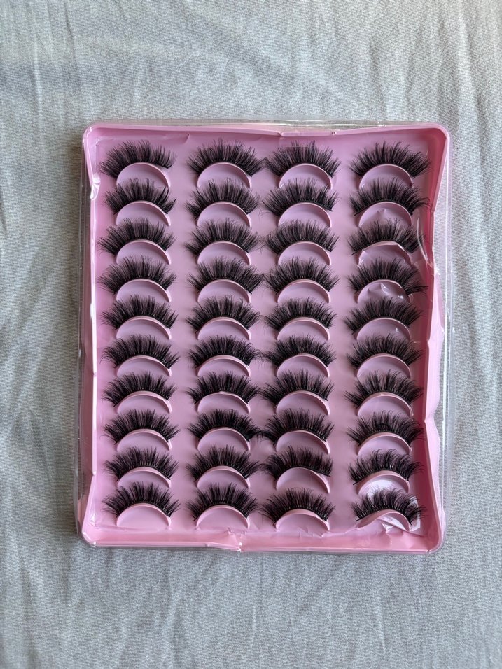 Hafif pembe kutuda çoklu takma kirpik seti