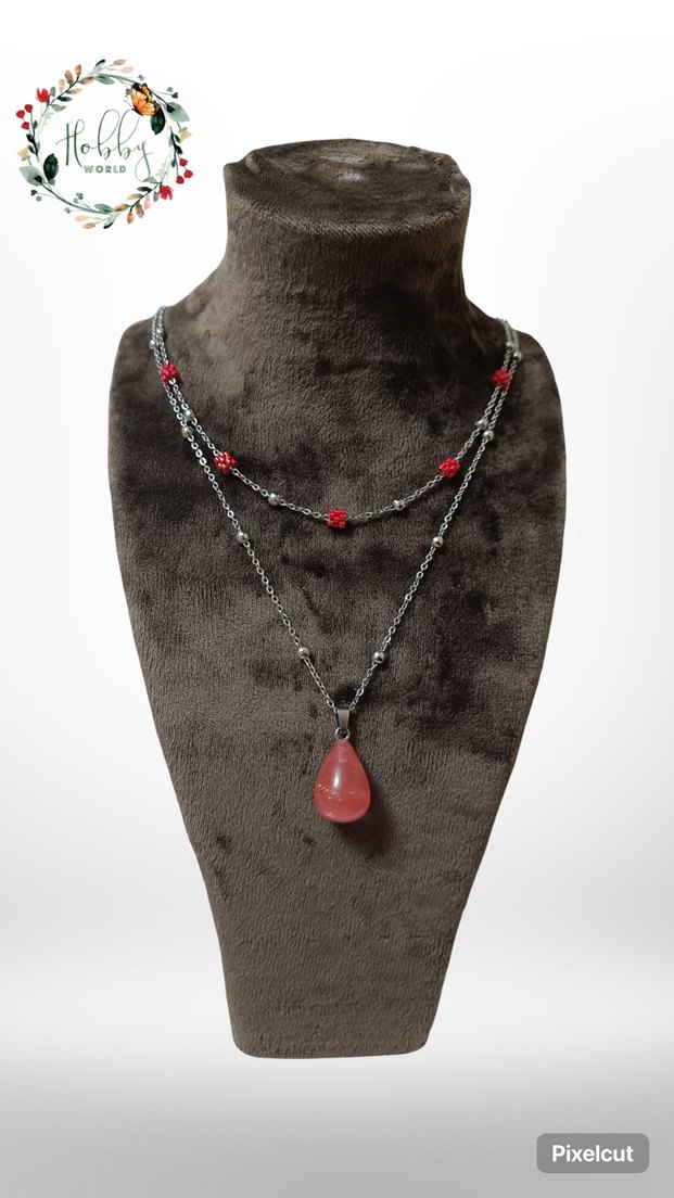 Kısa uzunlukta, kırmızı boncuk detaylı, renkli damla şeklinde kolye ucu olan bohem tarzda kadın kolyesi. Orijinal Miyuki boncuk ve çelik metaryel kullanılmıştır. Pembe Kuvars Doğal Taşlı olup zincir uzunluğu 56 cm dir. El emeği üründür.