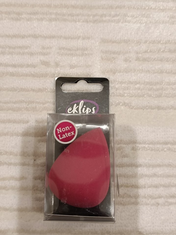 Koyu pembe renkli, latex içermeyen Eklips makyaj süngeri, pürüzsüz fondöten uygulaması için.